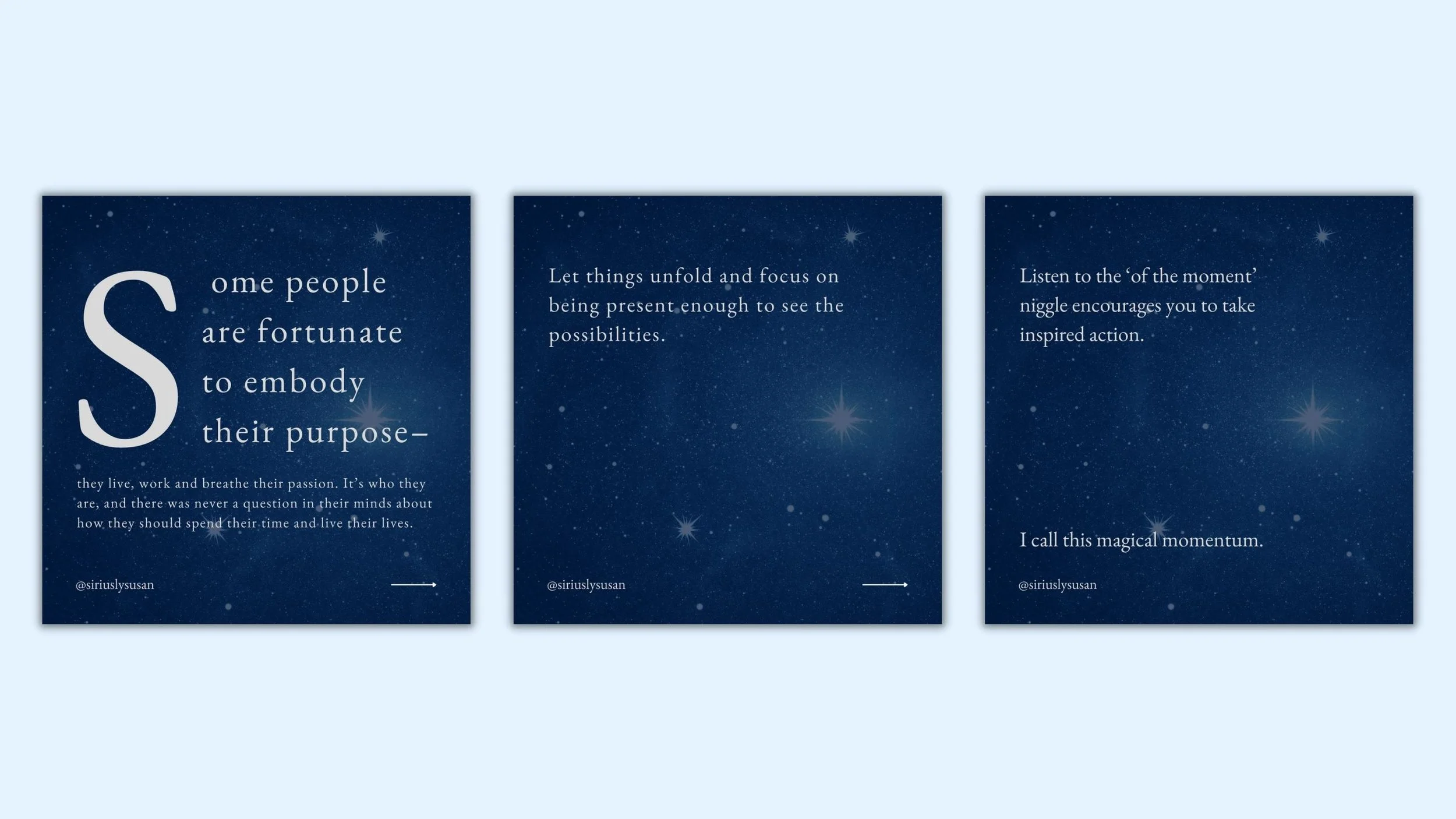 Susan is a powerful coach who demonstrates that it’s never too late to be a badass. Susan desired for her branding to feel bold while also showing a sophistication and depth. We crafted a moodboard after exploring her brand strategy and chose an elegant serif typeface used in a bold way positioned against the depth of galactic scenes to communicate the vastness and strength that exists within us.